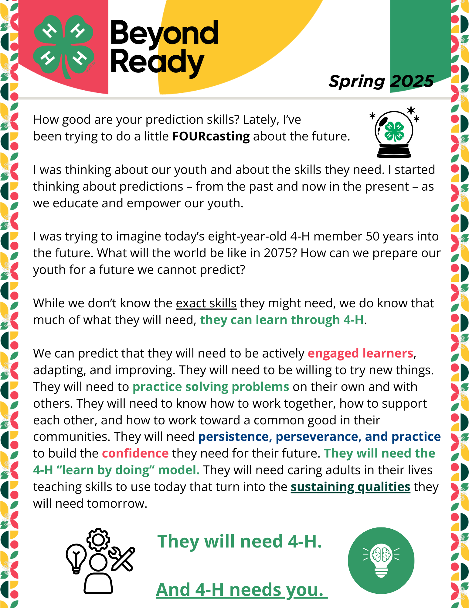 P.S. How did 4-H get you Beyond Ready for your life? Tell us by email at [email protected] or reach out to us by phone/text with a number below.